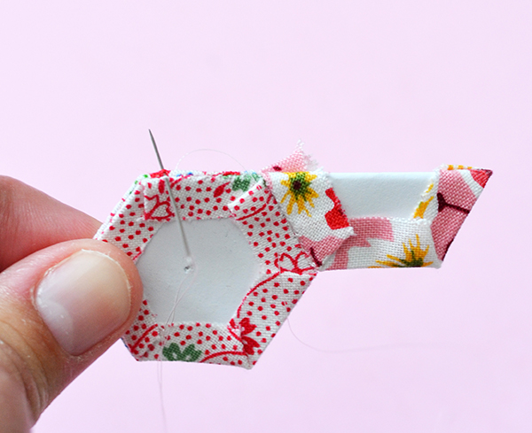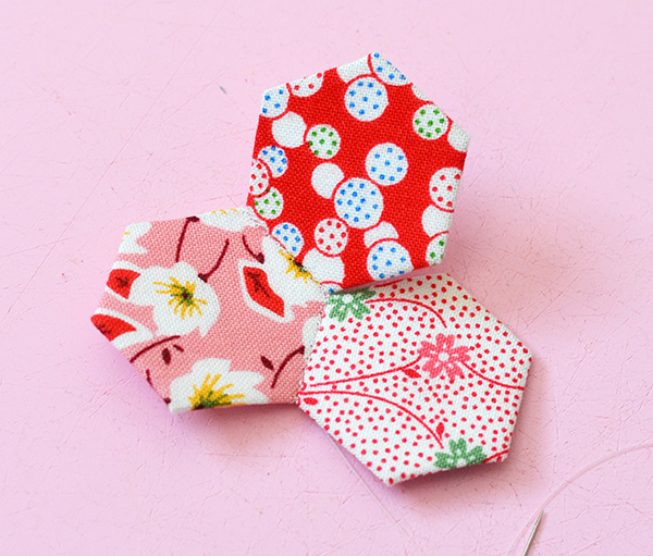 2. I use glue basting method for my hexies, which I find a lot quicker than thread basting. If you are using the same method as me, punch a hole through the centre of your hexie templates with a hole punch or thick needle before you start.