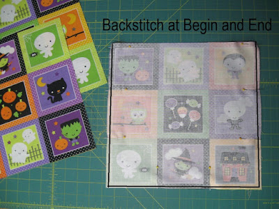 Begin by cutting out a 3 x 3 grid piece from your panel. It will measure 11 1/2″ high x 12″ wide. Be sure to cut right on the line between the squares in the panel.