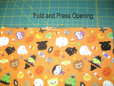 Finally, pull the lining back out of your bag slightly and fold under the opening 1/4″ so there is no longer a raw edge.